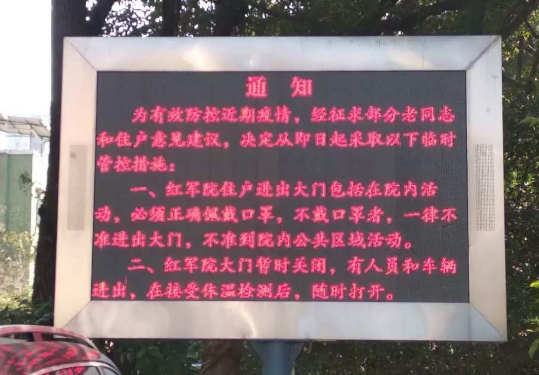 疫情就是命令,防控就是责任。为将市委市政府领导的指示要求落到实处, 1月下旬,市老干部休养所成立了疫情防控工作领导小组,研究制发了《南充市老干部休养所关于做好新型冠状病毒感染肺炎疫情防控工作的通知》和《南充市老干部休养所新型冠状病毒感染肺炎疫情防控应急预案》,春节期间,又通过学习强国视频会议,对各项防疫工作进行了安排部署。同时,该所利用线上交流平台和LED电子显示屏,在办公所在地红军院内大力宣传习近平总书记指示批示精神和中央、省委、市委相关会议精神,及时发布疫情信息,普及防护知识,增强服务对象、红军院全体住户及干部职工自我防范意识。