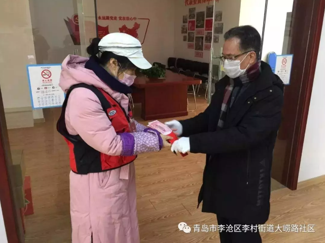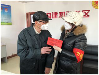 李村街道北山社区老干部协会会员,老党员万雪芳,向社区居委会捐献现金2000元整,用于抗击疫情一线人员购买口罩使用,充分展示了离退休干部党员的先锋模范的宝贵精神。