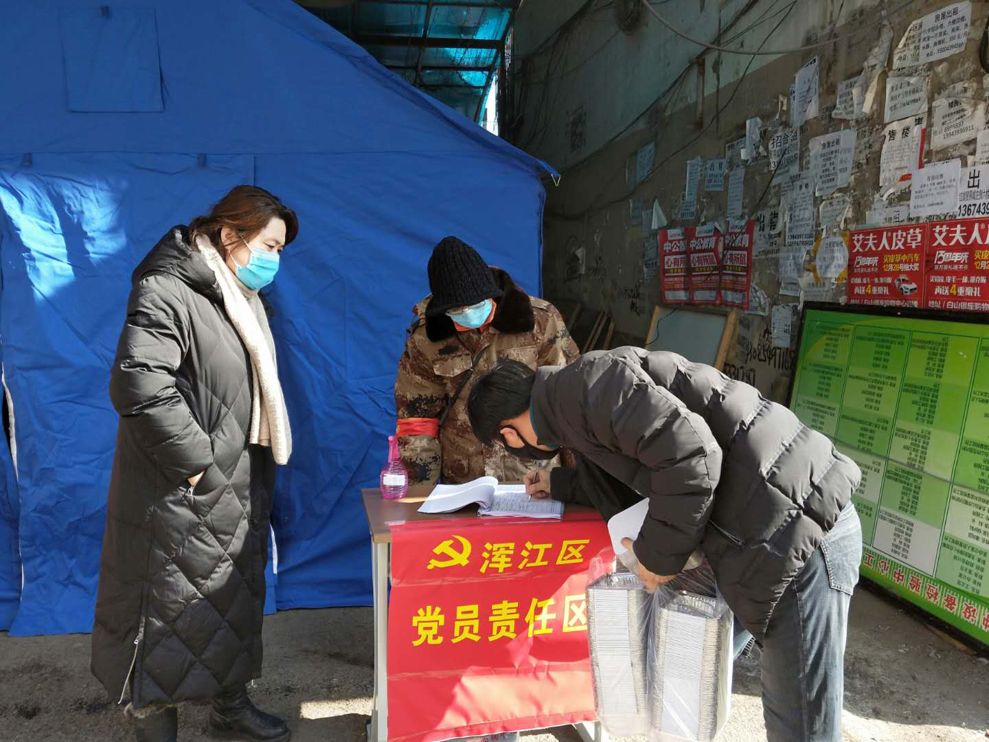 支援一线,做好疫情防控“志愿兵”。“您好,请出示您的出入证件。”“您好,我们需要对您的个人信息进行核实登记。”“您好,请按照正确方法佩戴口罩,尽量减少外出,做好自我防护。”……连日来,在红旗贸易城大都汇东侧的老旧小区出入口经常能听到这样熟悉的声音。市委老干部局直属机关党委早在2月6日就成立了党员先锋队,下沉到社区开始值守,在疫情紧要关头,由党员领导干部亲自带队进驻卡点开展24小时常态化无缝值守。这个小区位于市中心地段,人口流动量大、老年群体和外来人口占比高,防控难度可想而知。值守人员本着“一问二看三核对”原则,对辖区内116户居民及商圈附近商户进行巡查,并做好来往群众及车辆的咨询和登记等工作。面对有些群众的不理解、不配合疫情防控工作,支部党员始终保持热情的态度,提供心理上的安慰、排除内心的不安情绪,做到隔离不隔爱。在“小家”和“大家”面前,每名党员毅然选择“大家”,没有多余的话语,而是简单的一句“让我去,我来值夜班”;面对暴雪骤降,他们无一人叫苦,身体不适的同事依旧带病值守;在寒潮侵袭的恶劣环境下,全体党员均提前到岗到位,为的就是让上一班同志能够早点回家……大雪纷飞,挡不住老干部局党员干部的初心脚步,寒风呼啸,拦不住小区居民送来热乎乎的姜糖水、暖贴。在疫情来势汹汹之时,老干部局全体党员干部将责任扛在身,为辖区内群众生命健康保驾护航,切实用行动践行为人民服务的宗旨意识。
