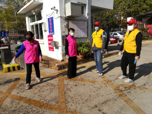 “螳川银发”志愿者黄莹是安宁市老年大学二胡二班班长,今年的春节假期成了她这几年来最繁忙的一段时间。从1月26日起,她动员2名学员,就在金方街道朝阳前山社区内外发安宁市委的倡议书,及《致安宁市广大市民的一封信》,并对小区内3名从武汉返家大学生进行家访,送口罩及消毒药片,及时请医生入户进行体检。每天坚持2次对小区23幢房子单元门内外喷洒消毒液,劝导居民尽量少出门“不扎堆”,发现外地车牌号及外地回归人员即时报告给社区,一直坚持到现在。截止2月25日,共办理小区车辆进出昆钢通行证239张,发放《新型冠状病毒知识》《冠状病毒可能的传播途径有哪些》等宣传资料近1万份。
