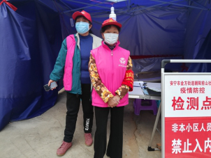 黄莹 安宁市老年大学二胡二班班长在金方街道朝阳前山社区参加疫情防控