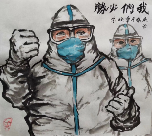 石峰,云南省书法家协会会员、云南春城书画院特聘书画家、云南春城书画院安宁分院院长,安宁市老年大学书法专业班教师。章晓荣,安宁市美术家家协会秘书长,安宁市老年大学绘画专业班教师。他们号召安宁市书画家们拿起手中的笔,积极投身到抗击疫情的主题书画创作中。和学员们在不到一天时间,便精心创作出30余幅打赢防控新型冠状病毒感染肺炎疫情战题材的书画作品。这些作品记录着感人故事,讴歌人间大爱,提振社会信心,以书画的形式,为打赢疫情防控阻击战注入了强大正能量。