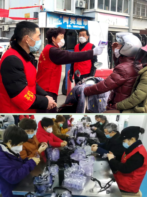 积极引导广大“银辉”志愿者开展形式多样的防控疫情工作。目前已有380余名“银辉”志愿者(其中210余名“银辉”党员)加入抗“疫”队伍,参与了社区“清楼”防控排摸、分发《告市民书》、防疫卡口值班、巡逻消毒等工作。如下菱社区、季卫桥社区的志愿者为居家观察家庭提供送菜上门服务,四明社区的志愿者们到企业帮助安装发往湖北疫区的护目镜。志愿者们不仅奋斗在防疫一线,更是踊跃捐钱捐物。老年大学“银辉”党支部、志愿服务大队委托学校用爱心捐款购买1400瓶医用酒精喷雾捐赠给5个结对社区,四明社区“银辉”志愿者自发为湖北疫区捐款10200元,长安社区“银辉”志愿者罗国珍捐款2000元作为社区防疫资金,新城市社区“银辉”党支部、志愿服务大队给社区送去一大桶医用酒精……组建“银辉”工作微信群,完善“银辉”党建工作联系网络,第一时间发布官方信息,引导广大“银辉”党员、志愿者积极发挥正能量,助力疫情防控。