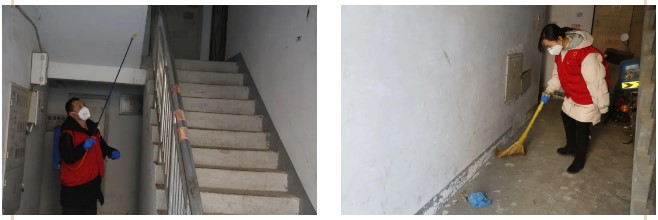 对重点区域、楼道实施全方位消毒作业,进一步阻断病毒传播途径。