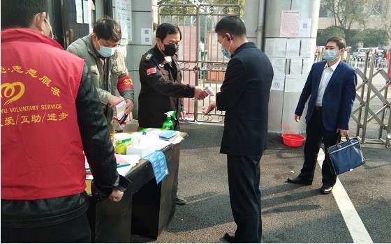在军休所门口接受了工作人员体温检测,对人员和车辆进行了消毒防护。新余市退役军人事务局党组局长刘金山、副局长胡琪、军休办方华科长赶来陪检。方利鹏处长实地查看了军休所封闭式管理、疫情防控宣传、物资储备、工作落实等情况,并认真的了解全体军休老干部当前的身体情况和个人防护用品、生活用品等情况。