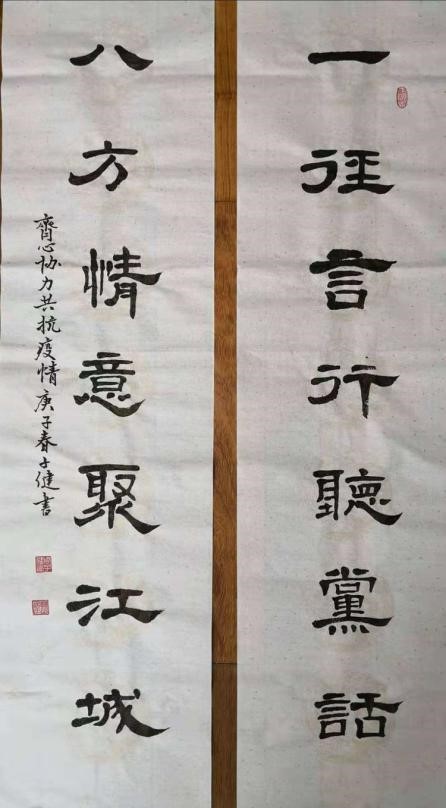 送瘟神》并做成彩视小电影,周子健同志在家中挥毫泼墨书写条幅“一径言行听党话,八方情谊聚江城”,陈骥、刘天志、戴玉成等同志也纷纷写下居家防疫诗词,抒发了共产党员一心向党、为民祈福的胸怀。