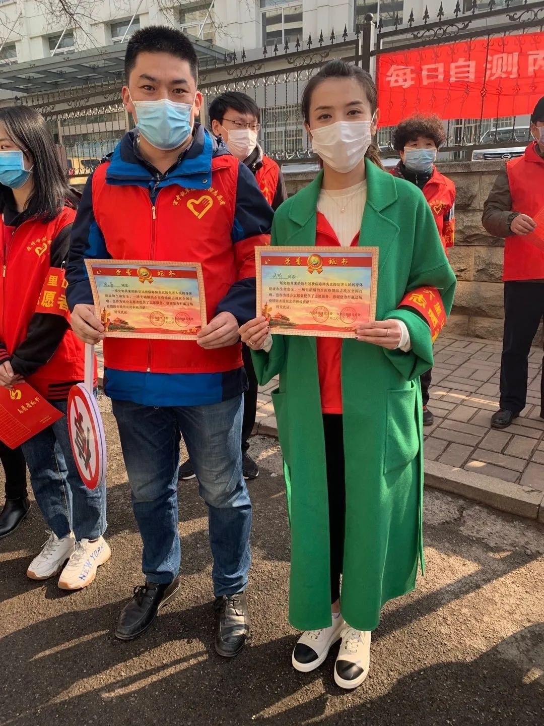 截至2020年3月7日,市干休所广大党员志愿者已在六里山路社区疫情检测点连续参加志愿服务33天,每天服务时长至少7个小时。在疫情防控关键时刻,志愿者积极响应党支部的号召,踊跃投身社区疫情防控工作,在做好市干休所疫情防控工作的同时,帮助六里山路社区在疫情检测点开展体温检测、人员车辆排查、宣传教育引导等工作,以迎难而上的担当精神和甘于奉献的为民情怀,以实际行动忠诚履职,在疫情防控诠释责任担当。2020年3月7日下午,市干休所志愿者代表到六里山路社区疫情检测点参加六里山街道爱心志愿战队授旗仪式,现场领取了由社区颁发的志愿者荣誉证书并在队旗上签名,立志传承发扬雷锋精神。市中区疫情处置工作领导小组负责同志到场参加仪式并对社区疫情防控工作中表现突出的市干休所等共建单位志愿者和社区志愿者表示感谢,激励大家继续为辖区防疫工作贡献力量。