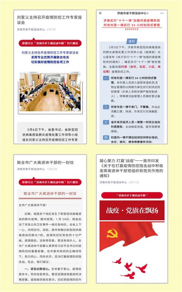 此外,还第一时间宣传报道了市老干部艺术团苏乐仁、泉城老干部太极拳队孙华一等多名老同志退休不褪色,继续贡献余热,主动报名参加志愿服务,积极投身所在社区疫情防控一线的先进事迹。并被泉城老干部微信公众号、爱济南新闻客户端先后转载。