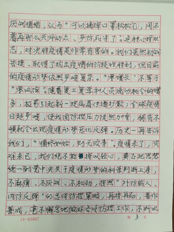 习近平总书记3月18日在中央政治局常委会议上强调:“要清醒看到国内外疫情形势的复杂性和严峻性,毫不放松地抓紧抓实抓细各项防疫工作,决不能让来之不易的疫情防控持续向好形势发生逆转。”境由心造,事在人为。贯彻落实习近平总书记的重要指示,夺取疫情防控之战全面胜利,必须明势正心,时刻保持应对疫情的良好心态。