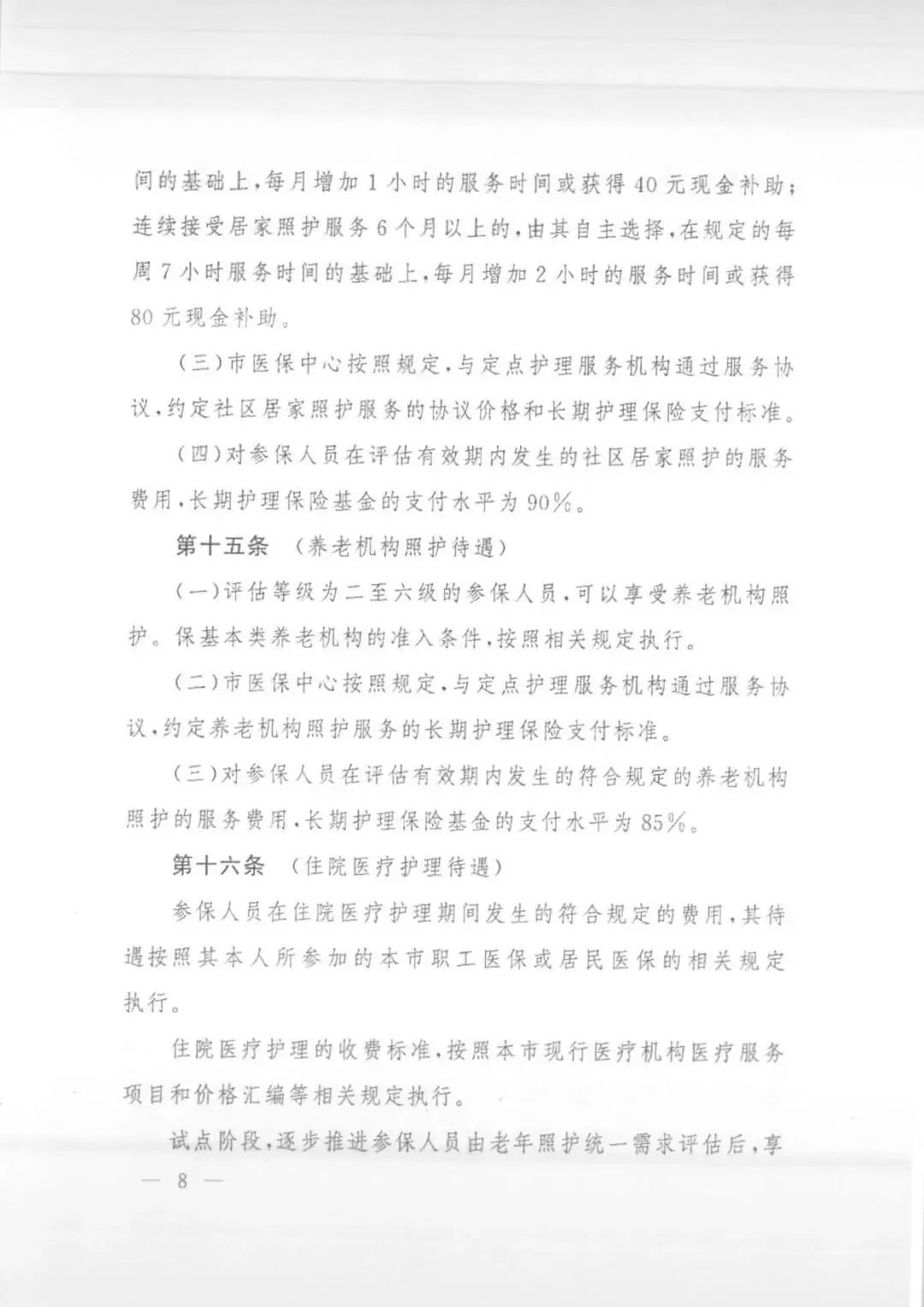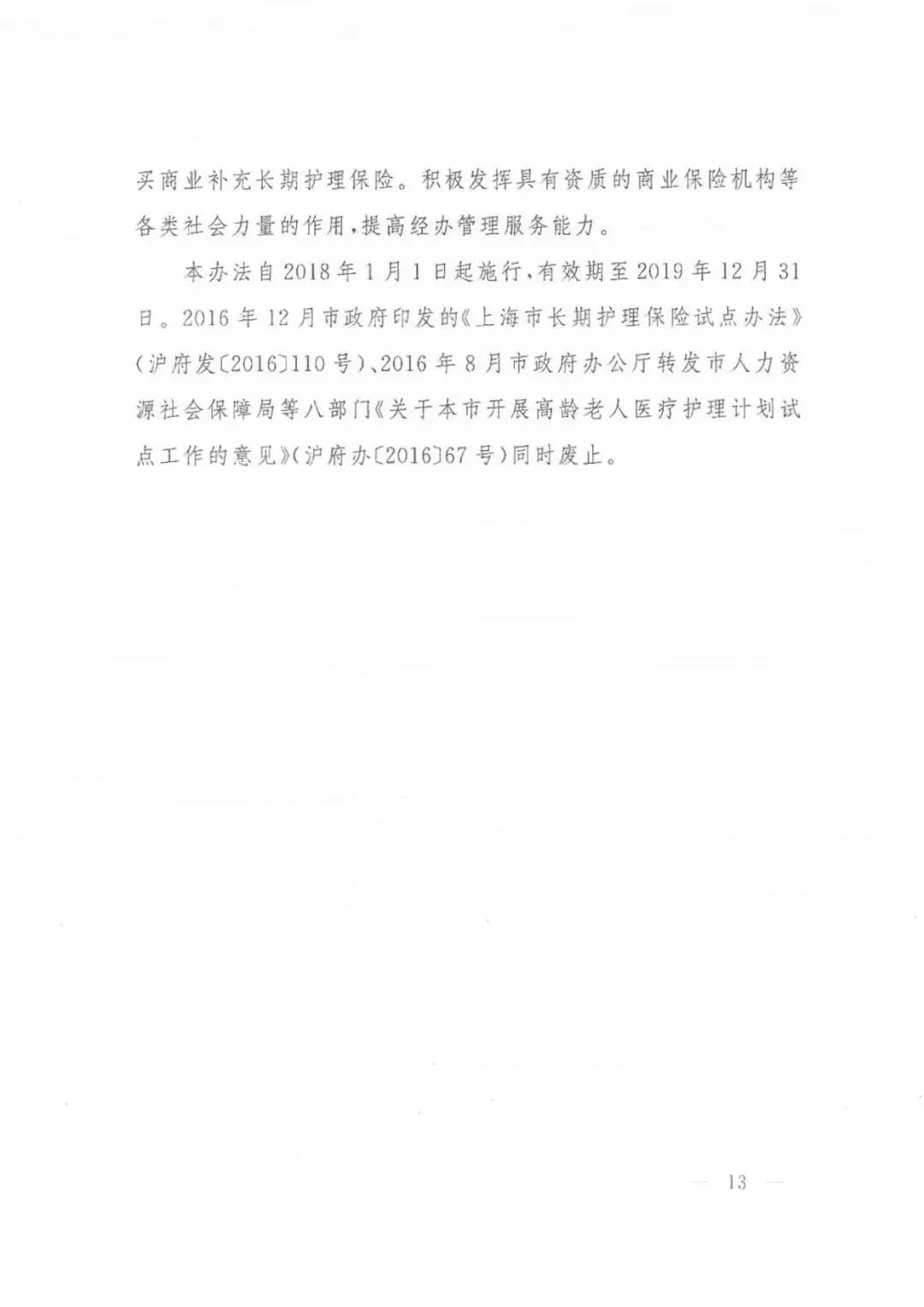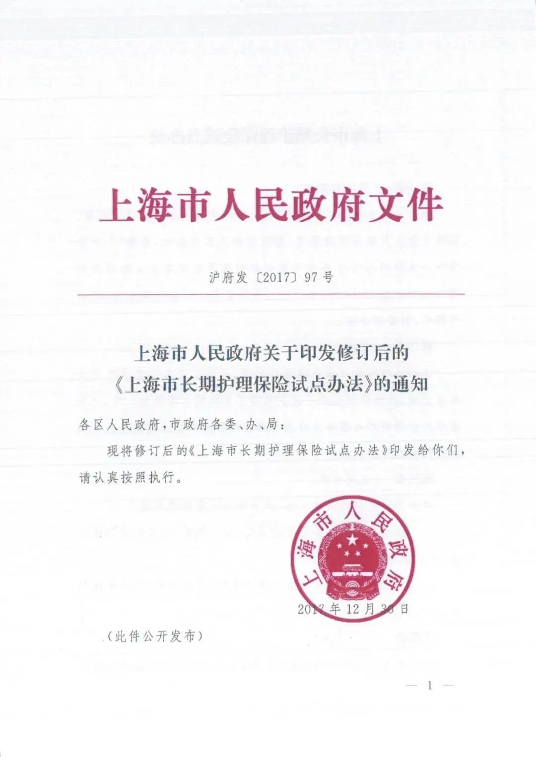上海市人民政府关于印发修订后的《上海市长期护理保险试点办法》的通知(沪府发〔2017〕97号)