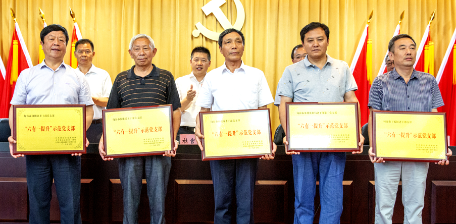 ▲2019年7月,句容市农业农村局老干部党支部(左二)喜领市级示范党支部的奖牌