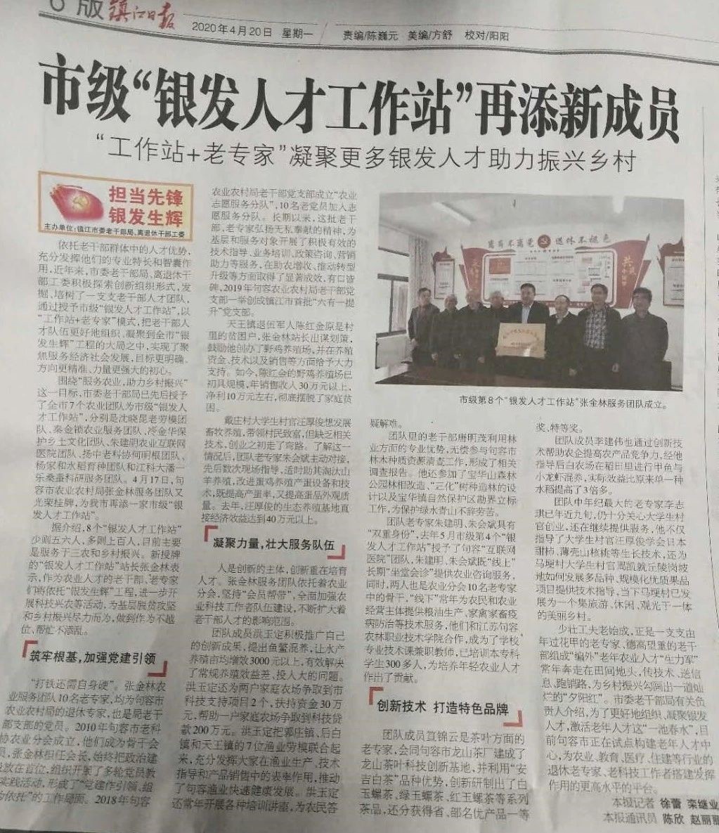 ▲2020年4月20日《镇江日报》报道张金林服务团队先进事迹