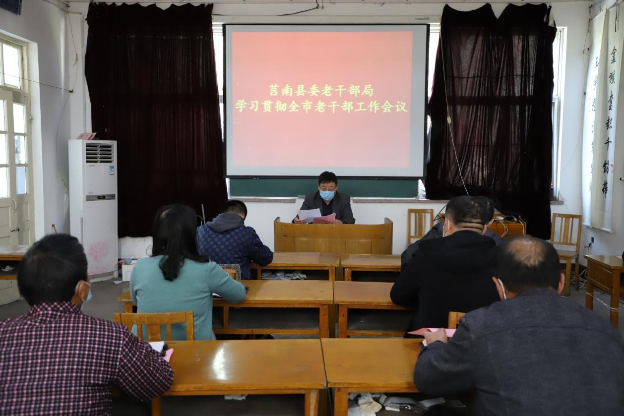 4月22日全市老干部工作会议召开后,莒南县委老干部局专门召开局务办公会和全体干部职工会,传达学习会议精神,并结合我县实际情况以打擂台、抓创新、促服务为目标,采取六项措施狠抓会议精神贯彻落实,推动全县老干部工作创新发展。