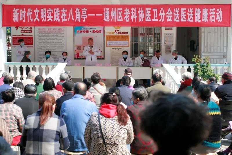 4月26日上午,江苏省南通市通州区“金夕助力”老科协医疗卫生志愿服务队前往金新街道八角亭社区,开展“新时代文明实践---区‘金夕助力’老科协志愿服务队送医送健康活动”。