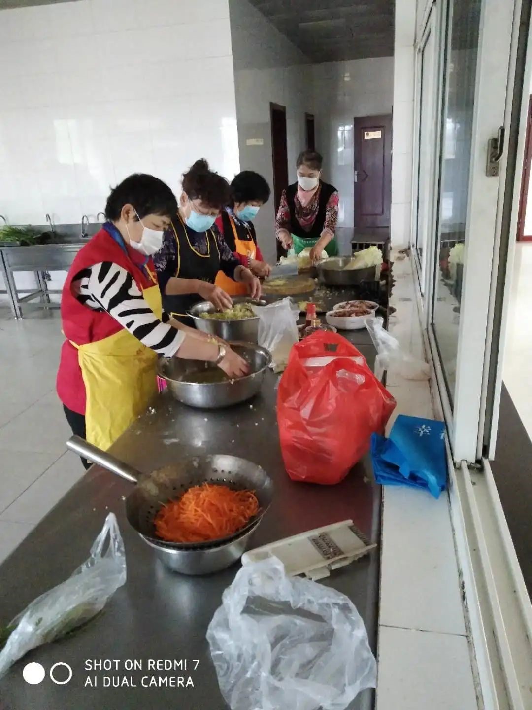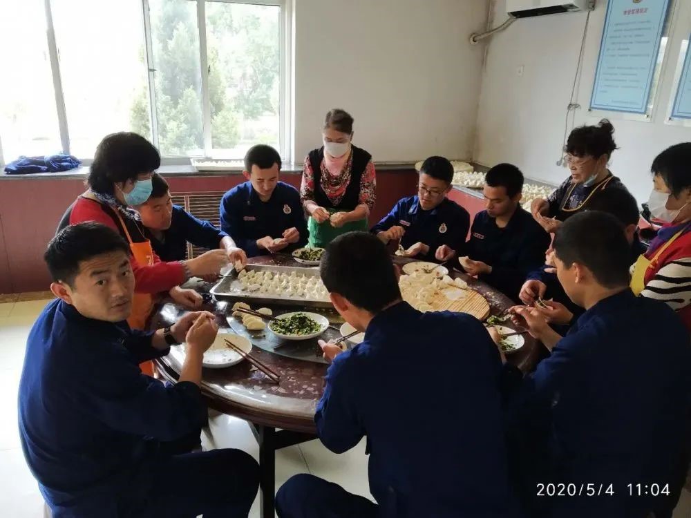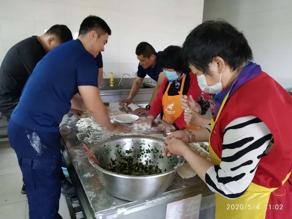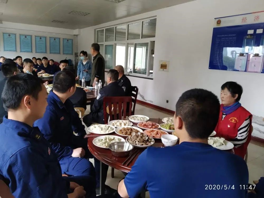 5月4日,楼山街道老干部志愿者服务队走进楼山消防中队,为五一假期坚守岗位的消防官兵包饺子送祝福。