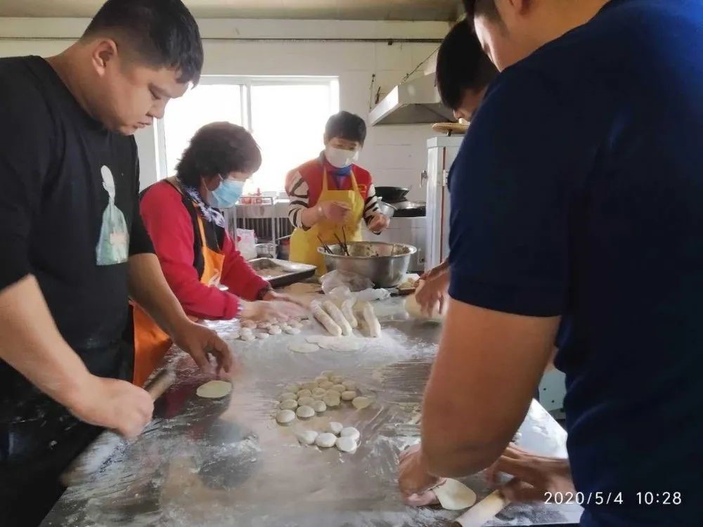 在消防中队食堂,志愿者们揉面、剁菜、调馅,大家一边包饺子一边唠家常。志愿者们还边包边讲解,手把手地教消防官兵包饺子,整个饭堂里欢声笑语不断。虽然大多数的消防员是“90后”和“ 00后”,不太擅长包饺子,但温馨融洽的气氛让他们十分投入。
