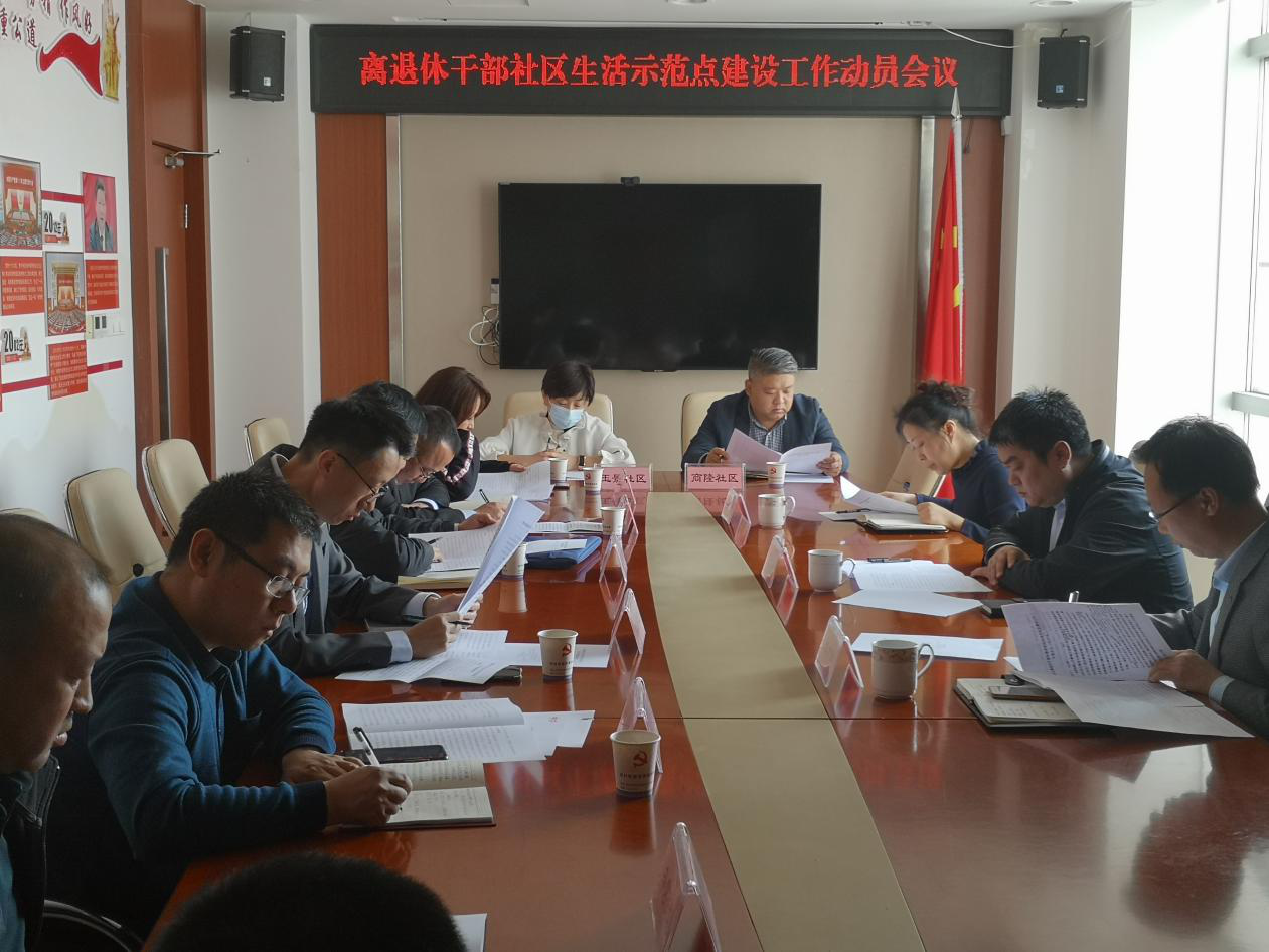 深入调研,专题部署。区委组织部、老干部局根据有关要求,成立工作专班,主动对接油田,广泛查阅资料,深入研究全区64个城市社区基本情况,特别是在老同志聚居的政府驻地、油田社区,逐一开展调研考察,通过座谈交流、入户走访等形式,认真听取介绍,全面了解情况。结合查阅资料、实地调研、信息统计等情况,综合分析各社区老干部年龄、居住、职业、学习活动情况,深入研判各社区老干部工作基础状况。针对社区所需所想与老同志所思所盼,制定了示范点试点工作方案,4月份召开了专题会议,召集各方代表,进行专门部署,全面启动示范点建设工作。