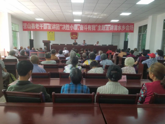 近段时间,营山县“银耀绥山”老干部宣讲团启动“决胜小康、奋斗有我”主题宣讲,向广大群众尤其是贫困群众,重点宣讲脱贫攻坚政策、共建共享理念、移风易俗观念、脱贫致富励志故事等,进一步提升了群众的认可度、幸福感、获得感,凝聚起打赢脱贫攻坚战的思想共识和磅礴力量。