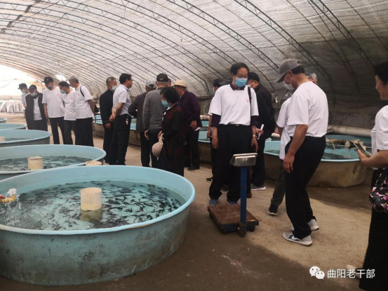 圣水湾冷水鱼养殖基地占地300亩,投资5000万元,现有中华鲟10万余尾,鱼苗60万余尾。老同志们兴致勃勃地参观了中华鲟养殖池和育苗大棚,听取了负责人的介绍,了解到该基地年收益300万元,累计带动贫困户200余户,做到了经济效益和社会效益的双丰收,纷纷为其点赞。