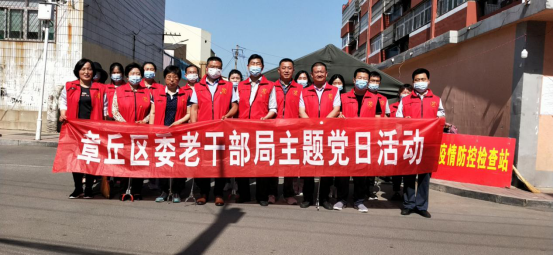 全体党员在社区疫情防控检查站合影留念。自2020年2月1日至今,在抗击新冠肺炎疫情的战争中,区委老干部局的党员与社区工作人员一道,坚守社区防疫第一线,他们冲锋在前,勇挑重担,坚守岗位、日夜值守,用志愿服务助力战“疫”、传递温暖,他们用热忱与担当,全力构筑起抗击疫情的“铜墙铁壁”。