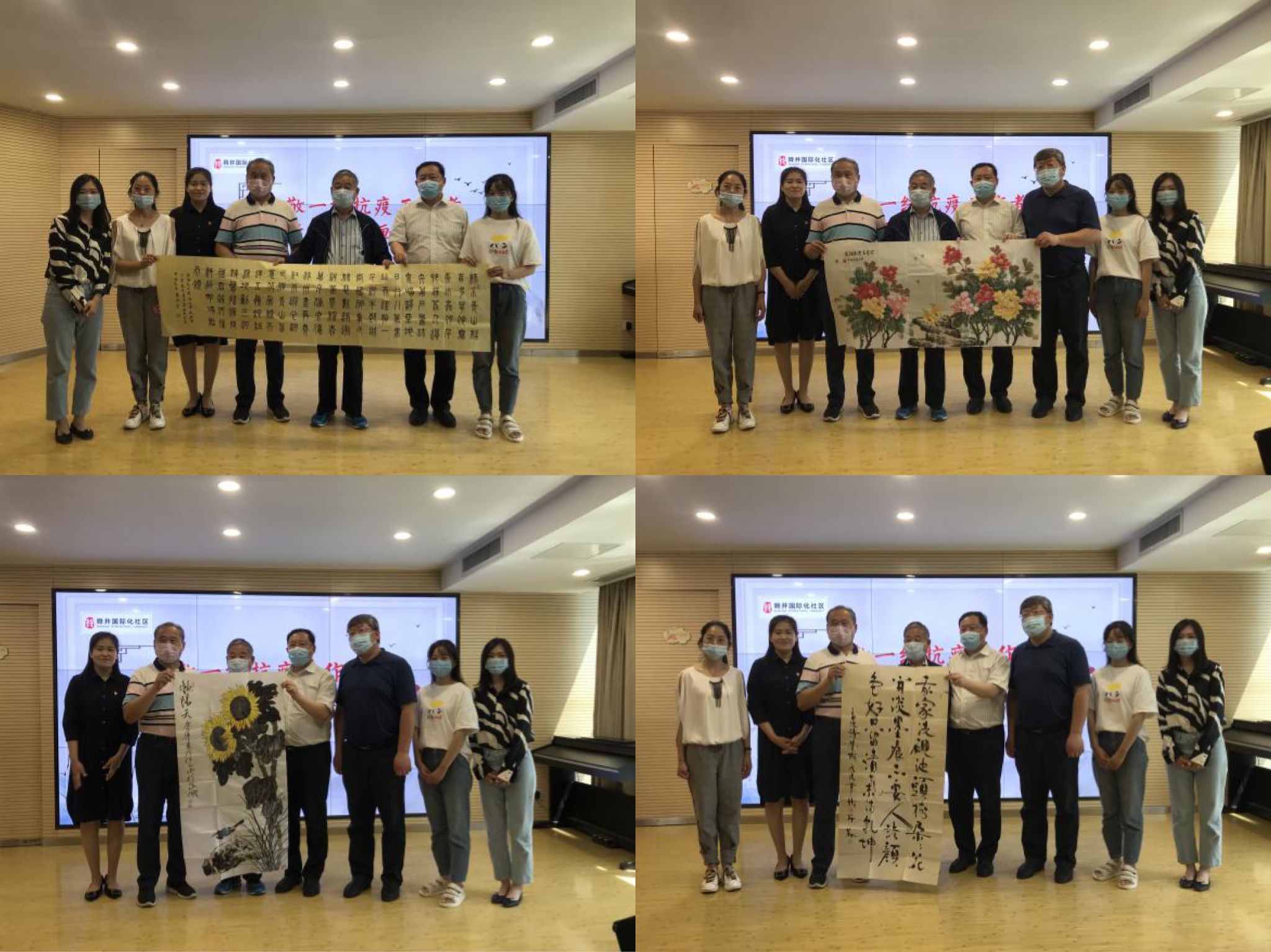 翰墨寄深情,丹青绘大爱。2020年5月28日,为致敬社区一线抗疫工作者,省政协办公厅组织离退休干部书画进社区活动,邀请有书法、绘画专长的离退休干部创作了8幅内容积极向上的书画精品,捐赠给大明湖街道舜井社区,向抗疫一线的社区工作者表达敬意。省政协办公厅一级巡视员薛相锐、省政协办公厅原巡视员袁庆宏、离退休干部处原调研员史衍勤等参加了活动。