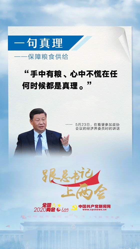 在参加政协经济界委员联组会时,习近平指出,手中有粮、心中不慌在任何时候都是真理。
