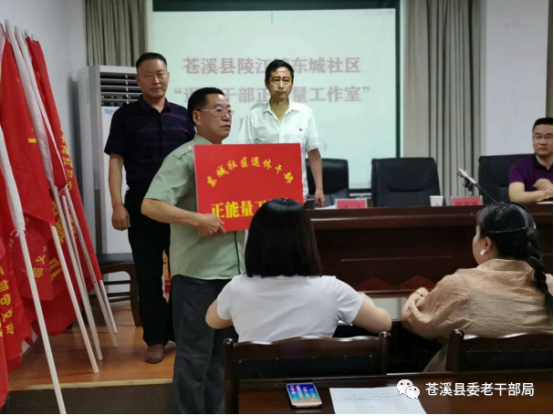 陵江镇党委和东城社区党委共同为“退休干部正能量工作室”授牌。