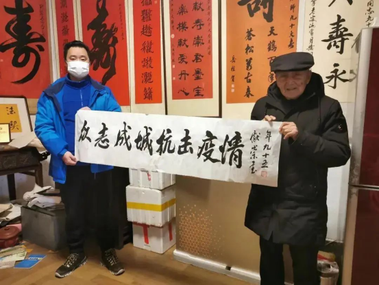 缙云县刘爷爷工作室的创办者为离休干部刘献崇,现已95岁高龄。自抗疫工作开展以来,他带领工作室的书画爱好者们到各村开展“书画抗疫”等宣传活动,成为凝聚当地群众参与抗疫、推动经济社会恢复生产的一支特殊力量。