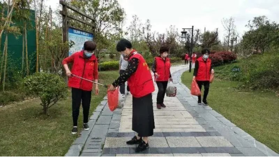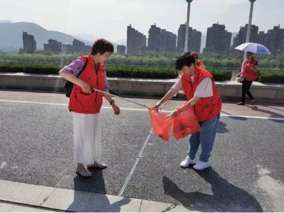 市老干部志愿者协会的老同志们积极参与路段巡捡垃圾、文明劝导等志愿服务活动,开展“垃圾分类”“五水共治”等宣传活动。