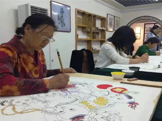 而在南湖区常山社区小展村新时代文明实践站,73岁的臧运香正在给一幅描摹好的年画涂色,经过一个多月的学习,她现在的涂色技艺已经变得很娴熟。“俺现在感觉每天不动动笔,描描画,就浑身不自在。俺也没想到这么大岁数还能有这个爱好。再说这老师就在俺家门口这里,比俺坐在村头拉家常有意思多了。”臧运香嘴里说着话也没停下手中的笔。小展村年画传习馆的牵头人、老年大学教师于建学说,“诸城的年画是一门手工艺,不能让老一辈的年画手艺就此搁浅,得带动更多人学这个,会这个,这也是给村里这些贫困老人提供了一个学手艺的机会。”与老师的课每天培训2小时,“差不多20天的学习,他们基本能拿起笔来了。” 按照于建学的构想,他要推动年画成为村里贫困老人乃至留守老人的发展产业。“一幅四尺斗方的《年年有余》装裱后可以作价800-1000元销售,一般从业者可用三四天时间画出来。”于建学说。如今的小展村充分发挥“民间年画”这一优势,大力发展非物质文化遗产,全力培育和发展年画产业链,正全力打造一个集培育年画传人、发展年画产业、带动群众增收致富于一体的年画基地。