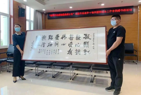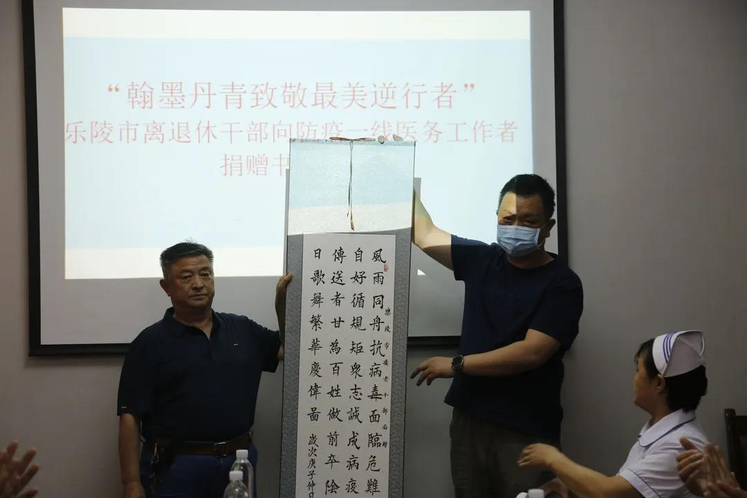 向乐陵市人民医院、乐陵市中医院疫情防控一线医务工作者捐赠书画精品。