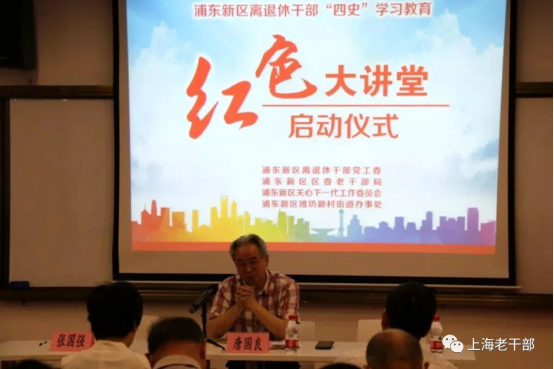 为贯彻落实“四史”学习教育要求,进一步引导广大离退休干部树牢“四个意识”,坚定“四个自信”、做到“两个维护”,激发老同志助力青少年爱国主义教育和革命传统教育、关爱青少年健康成长的热情,浦东新区区委老干部局精心策划,特别开设了“红色大讲堂”。首场讲座邀请原川沙县委宣传部部长、组织部部长、浦东新区第一届政协秘书长唐国良讲述《中国共产党成立的那一天》。
