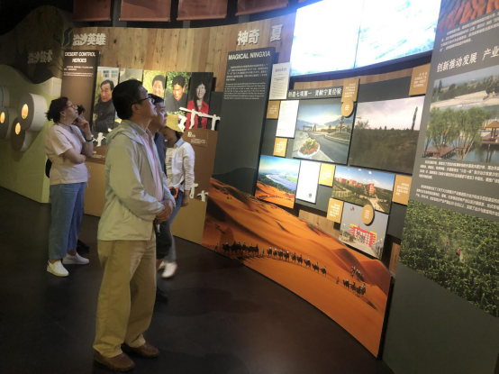 随后,一行人来到白芨滩全国防沙治沙教育基地,参观考察了白芨滩全国防沙治沙展览馆。讲解人员从治沙技术、产业发展、生态恢复等方面向活动中心全体工作人员全方位介绍了白芨滩在防治荒漠化的成绩和实践经验。讲解人员详细介绍了白芨滩国家级自然保护区发展历史和“人民楷模”王有德同志带领林场职工几十年如一日在荒漠中埋头苦干取得的不凡成就,在场人员被王有德奋斗历程和人进沙退的惊人壮举所感动。大家纷纷表示要认真学习“人民楷模”王有德先进事迹,学习他对国家和人民的无私奉献精神和锐意进取的创新精神、踏实苦干的奋斗精神,要见贤思齐,坚守初心,在自己的岗位上激发干事创业的热情,撸起袖子干、挥洒汗水拼,始终做新时代长征路上的不懈奋斗者。(文徐秋云 图陈荣生)