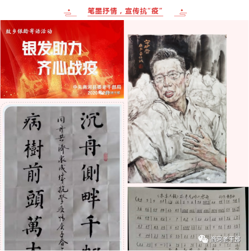 助力疫情防控。一是投身防控一线。组织离退休干部用实际行动参与抗“疫”,有的坚守在门诊、物资分配等岗位一线,有的主动到小区、村居,协助做好盯防、管理、测温,主动了解情况、宣传防控政策。据统计,全县共有1500余名离退休干部参与到疫情防控一线,捐款捐物超5万元,为打赢疫情防控阻击战发挥了积极作用。二是笔墨抗“疫”。在全县范围组织开展了“银发助力,齐心战疫”银龄寄语和“共克时艰,抗击疫情”文艺作品征集活动。广大离退休干部“宅”在家里,用诗歌、书画、舞蹈、说唱等不同艺术形式,宣传中央决策部署、点赞抗“疫”一线人员,凝聚抗“疫”的精神力量。共征集作品400余幅(件),参与人数达500余人。