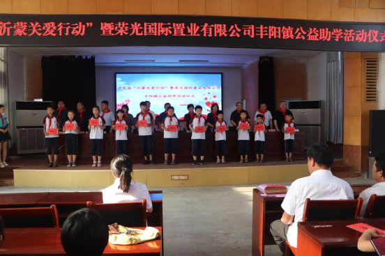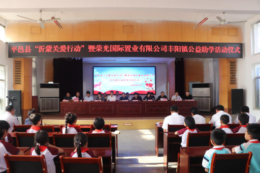 2020年6月10日,为贯彻落实省、市关工委关于开展“沂蒙关爱行动”的要求,平邑县关工委联合荣光国际置业发展有限公司在丰阳镇举行公益助学活动仪式。县关工委主任廉茂岭,县关工委副主任王晓萍,县人大常委副主任、县关工委副主任邱春力,县政协副主席、县关工委副主任王霞,县关工委副主任张大勤,县教体局局长曹兆清,丰阳镇党委书记魏伟,丰阳镇党委副书记、镇长朱龙飞及老干局、教体局等单位的领导出席活动。县政府副县长、县关工委副主任张晓华主持仪式。