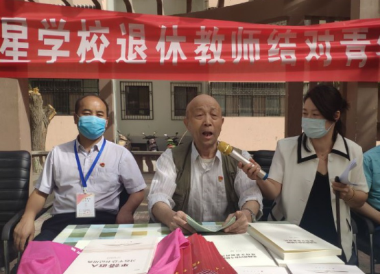 年近90岁的退休教师代表李彦生老师为我校17对新老结对教师再次讲述辉煌壮阔的兵团屯垦戍边发展史。他希望青年教师将实现自身价值与学校发展紧密结合在一起,深钻业务,思想过硬,不断成长为助力红星学校教育事业的能手和强手。