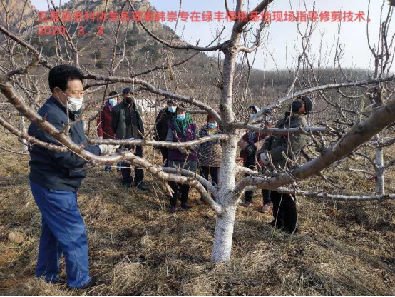 五莲县老科协组织会员们走村入户,深入乡村田间地头,在宣传抗疫重要性的同时,对蔬菜种植户和村民就种植、管理等方面存在的不足,及时给予技术指导和帮助,开展科技培训。五莲县老科协常务理事韩崇专疫情期间不宅家,服务三农传佳话。常务理事韩崇专,是一名退休科级干部、果树农艺师,在长期的工作实践中,熟练掌握了一套果园管理技术,常年奔波在果园里传授技术,是深受欢迎的果农之友。韩崇专充分发挥自身专长,尽心助力果业扶贫项目,一心靠在日照窦氏农业开发有限公司大樱桃基地上。该项目于2015年栽植建园,2019年中至镇建设的连体暖棚扶贫项目,是五莲县单体面积最大的大樱桃设施栽培项目,风险大,技术要求高。为保证项目的顺利实施,韩崇专一直靠在项目建设上,现场指导每一个细节,直到腊月二十八才回家。刚过春节,大棚樱桃需要升温,当时正值新冠疫情最严峻的时期,城乡全部实行封村封路,禁止人员外出流动。韩崇专在家心急如焚,不满足用电话联系,遥控指挥,他找有关部门办理了通行证后才戴着口罩赶到了基地,每天定时观察棚内温度湿度变化,根据天气状况决定升温降温措施,现场指导果农浇水、施肥,拉枝、授粉等技术,始终靠在基地上。应果农之邀,韩崇专还在疫情期间,先后到叩官绿丰樱桃基地,松柏村、光明村果园,许孟樱桃大棚等地,现场技术指导,满足了果农急需,深受果农欢迎。