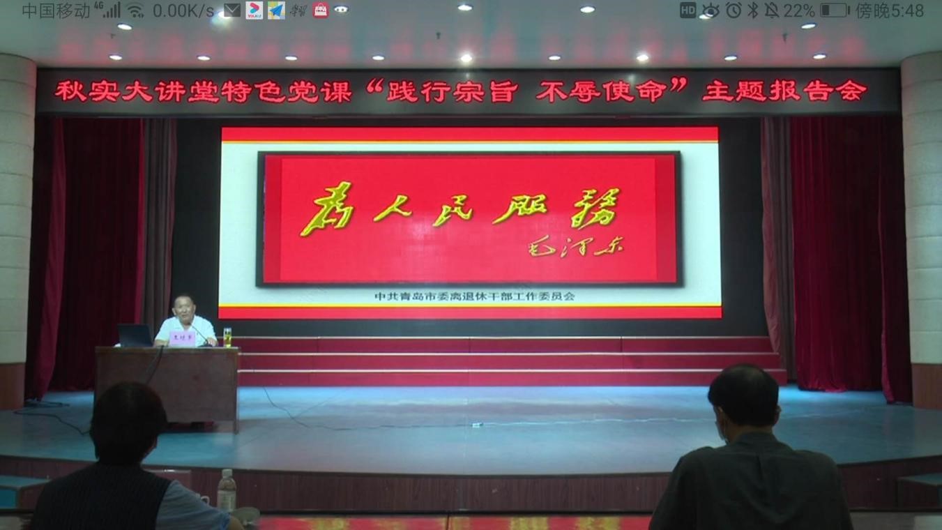 为推动全市离退休干部深入学习贯彻习近平新时代中国特色社会主义思想,持续激发抗击疫情中凝聚的强大精神力量,针对疫情期间老干部政治学习无法集中组织开展的实际,青岛市离退休干部党工委创新党课形式,推出“互联网+党课”教育模式,将党课搬到“指尖”上,助力各离退休干部党组织开展“三会一课”。“七一”来临之际,特邀请青岛电大原副校长、青岛市老干部宣讲团团长王继军为全市离退休干部和老干部工作者讲授党课。
