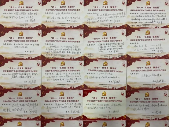 高青县组织广大离退休干部党支部书记在政治生日贺卡上写下对党的诚挚祝福和自己的初心,庆祝建党99周年。