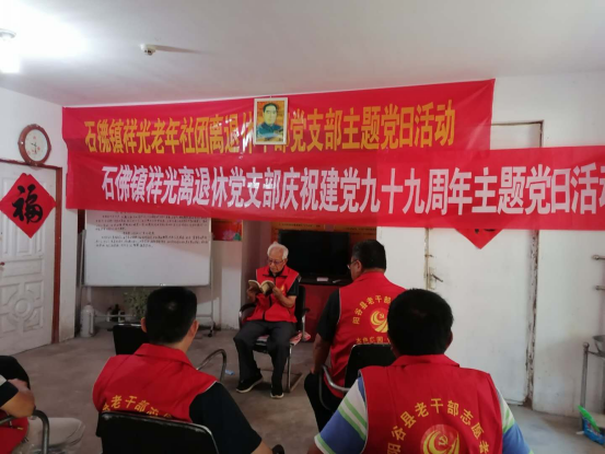 四是召开一次主题党日活动。全县各离退休干部党支部于“七.一”前夕,组织离退休干部党员以开展政治理论学习、重温入党宣誓、唱红歌戏曲等不同方式开展“听党话 跟党走 颂党恩”主题党日活动,增强了离退休干部党员的党性意识,促进离退休干部党员政治坚定、思想常新、理想永存。