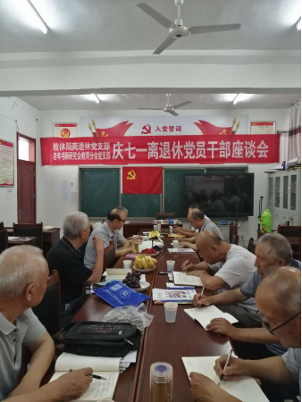 五是召开一次离退休干部座谈会。6月28日,阳谷县教育体育局离退休干部党支部联合县老年书画研究会教育分会离退休干部党支部组织召开了“庆七.一”离退休党员干部座谈会,共同畅谈了建党九十九周年以来祖国的发展变化,赞美了取得的伟大成就,倾诉了对党和祖国无限的深情,纷纷表达了坚决听党话、跟党走、念党恩的信心和决心。