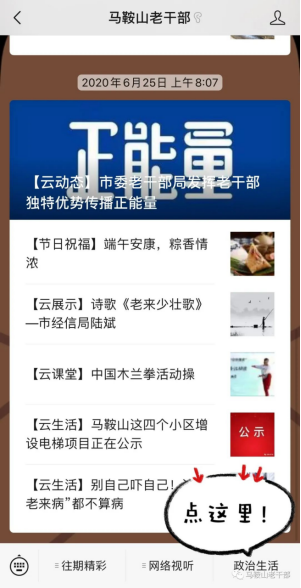 点击“马鞍山老干部”服务号底部菜单栏“政治生活”