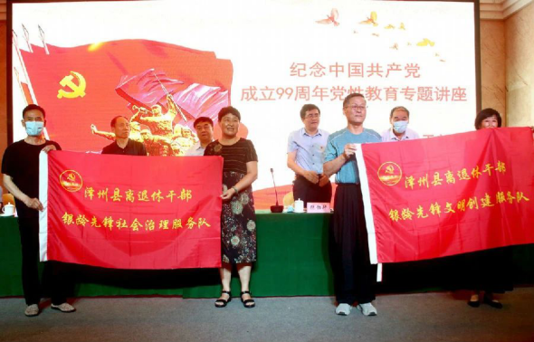 在纪念中国共产党成立99周年之际,泽州县“银龄先锋”党员志愿服务队正式成立。成立大会上,老干部志愿者代表纷纷表态发言,表示将积极参与各种志愿服务活动,助力新时代党的建设、脱贫攻坚、文明创建、社会治理,为推进古韵泽州高质量转型跨越发展贡献正能量。