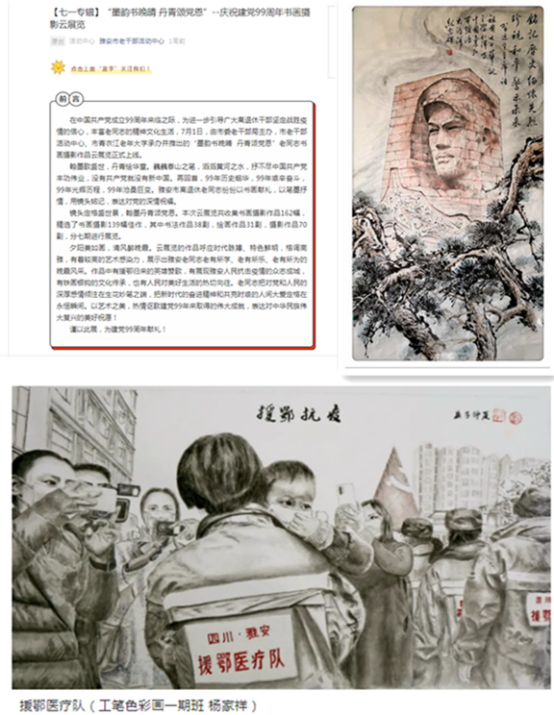 举办“云展览”。以“万众一心、抗击疫情”为主题,在广大离退休干部中常态开展以“艺”抗“疫”书画摄影作品“云展览”活动。组织老年书画、摄影人士用画笔描绘英雄形象,用翰墨抒写最美画面,用影像记录感人瞬间,累计征集书法作品38个,绘画作品31个,摄影作品70个,每周线上分主题推送精选作品1-2期,进一步丰富广大离退休干部精神文化生活,坚定战胜疫情信心。工笔色彩画一期班学员杨家祥精心绘就《援鄂医疗队》作品,向奋战在疫情防控一线“最美逆行者”致敬,表达鄂汉人民互帮互助鱼水情。