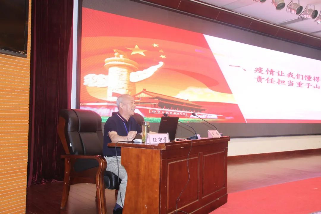任守景同志通过联系个人退休后的心路历程,回顾抗击新冠肺炎疫情以来,全国人民在党中央的坚强领导下所取得的重大战略成果,向与会人员全面解读了中国特色社会主义制度优势和大国担当以及干部责任担当的重要作用。深刻阐述了新时代离退休干部要做中国特色社会主义建设事业的“压舱石”、做新时代主旋律的“传播者”、做老龄社会的“领航人”、做小康社会建设的“好帮手”。从调整积极心态、强化宣传引导、搭建活动平台、搞好党建延伸等方面,介绍了新时代离退休干部发挥余热的经验和建议。