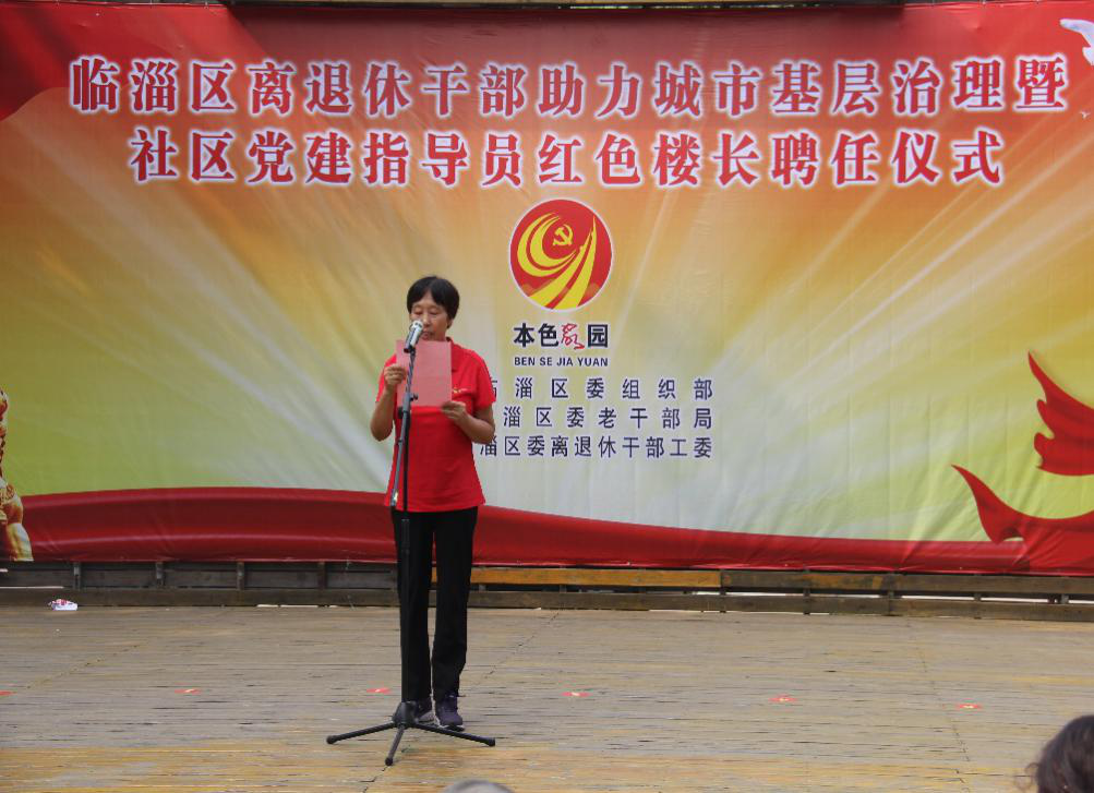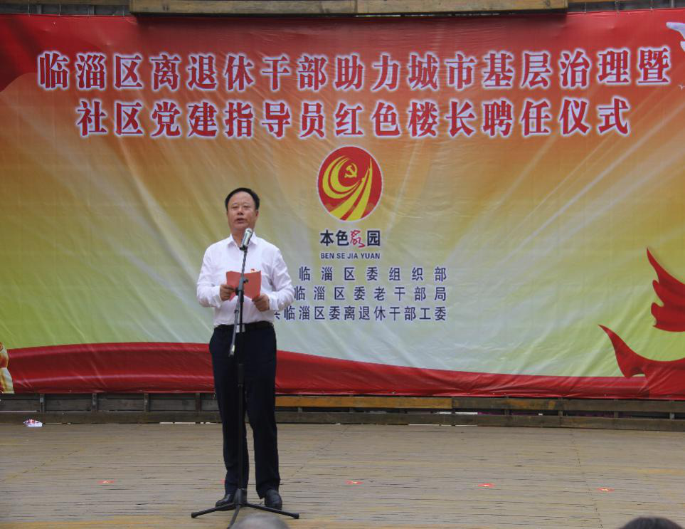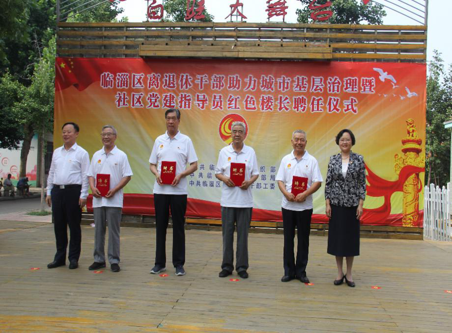 市委组织部副部长、老干部局局长贾素英,临淄区委书记朱正林,市委老干部局副局长周宏伟,临淄区委常委、办公室主任、统战部部长杨晓军出席仪式,临淄区委常委、组织部长刘伟主持仪式;临淄区部分老同志以及各街道、区直有关部门主要负责同志,社区书记,部分社区银领党建指导员、红色楼长代表参加仪式。