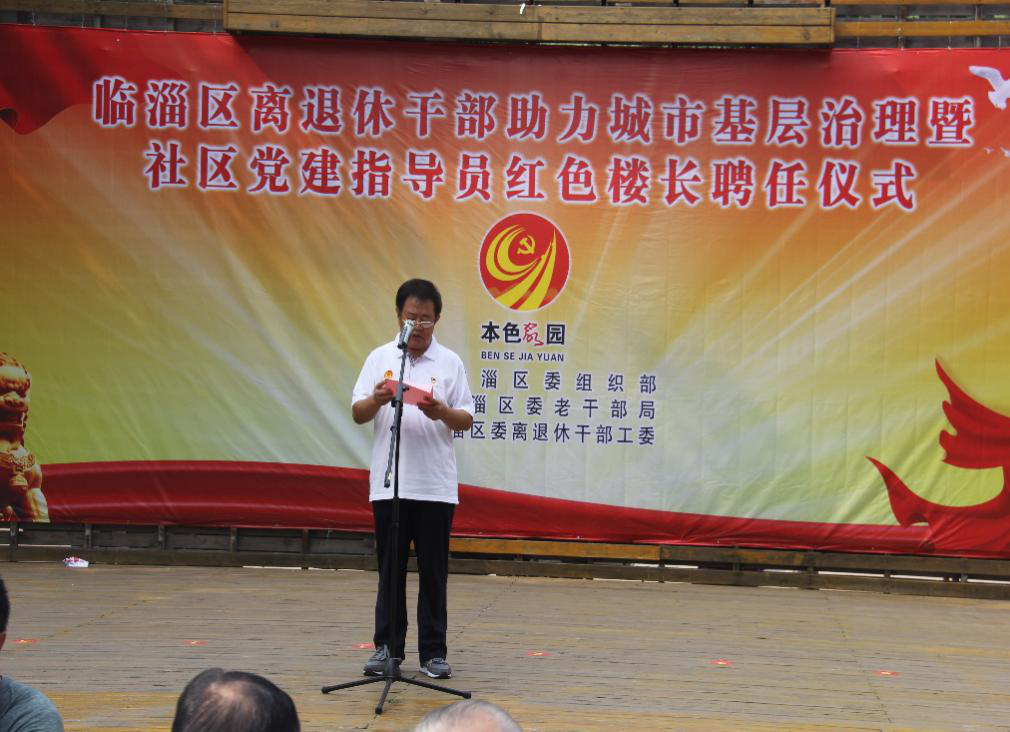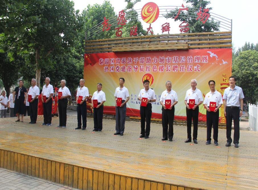 7月28日,淄博市临淄区离退休干部助力城市基层治理暨社区银领党建指导员、红色楼长聘任仪式在闻韶街道勇士社区举行。