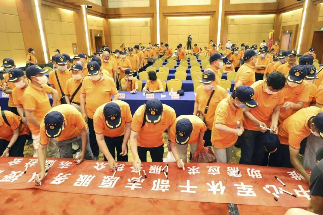 “我志愿加入军休干部志愿服务队,我承诺:尽己所能、不计报酬、播撒热情,在每一个需要我的岗位,遵守纪律、服从指挥……”授旗仪式上,200余位军休干部身着橙色志愿队服,举起右拳,面对主席台上的队旗庄严宣誓,郑重承诺,践行“退休不退志,退伍不褪色”的军人本色,发光发热,帮助他人,为“精致城市·幸福威海”建设增光添彩、贡献力量。军休干部志愿者们还在“帮困解难、助需应求、服务群众、奉献社会”志愿服务工作理念条幅上郑重地签下了自己的名字。