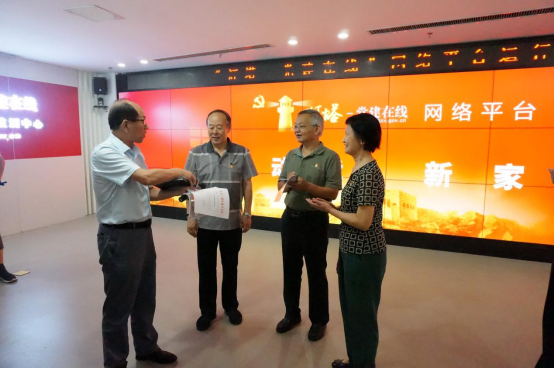 为纪念建党99周年,共筑“本色家园”党建品牌,山东广播电视台离退休党总支联合驻区青年东路社区党委,于7月29日,赴省委组织部“灯塔-党建在线”管理服务平台参观学习,开展主题教育活动,现场发放、导读《习近平谈治国理政》第三卷,为受表彰的优秀党员和党务工作者颁发证书,为新退休的党员同志代表举行荣退仪式。