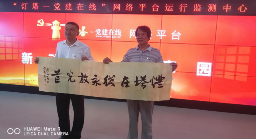 “灯塔在线永放光芒”,活动结束时,山东台离退休党总支书记高学洲、青东社区大讲堂首位开讲人孙春亭,向“灯塔-党建在线”综合管理服务平台赠送了书法作品,表达敬意。
